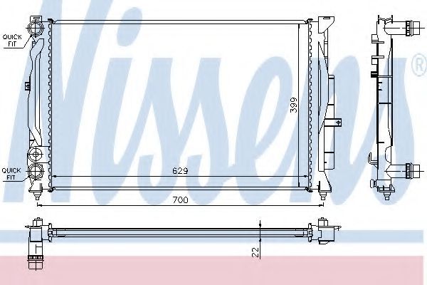 - Размеры радиатора: 629 X 399 X 22 mm