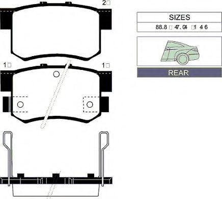 WOKING – P2253.04 – Гальмівні колодки зад. Civic 98-/Accord 90-03 (Akebono) (47,8x88,9x14,5)