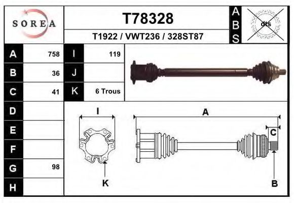- Приводной вал: без кольца ABS